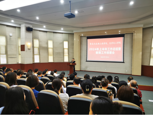 在学院演讲厅召开教职工大会,总结2024年上半年工作,安排部署暑期工作。会议由党委书记孙雁霞主持,全体班子成员、全院教职工参会。