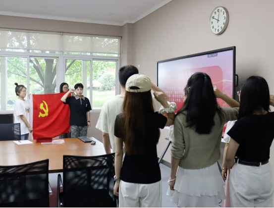 学院党委组织新吸收的预备党员举行集中入党宣誓仪式。面对鲜红党旗,新党员庄严宣誓,老党员重温誓词,铿锵誓言表达了为党的事业奋斗终生的决心。活动现场还为党员代表颁发“政治生日”贺卡,通过寄语勉励、分享入党初心,强化党员身份意识和责任担当。