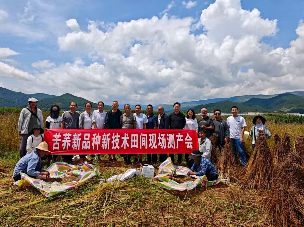 农业农村部杂粮加工重点实验室联合凉山彝族自治州农业科学研究院和昭觉县农业农村局邀请专家对其共同实施的“成苦2号”及其配套高效生产技术的田间高产创建示范进行了现场测产验收。测产结果惊艳亮相:昭觉县三岔河镇姐把哪打村的示范田亩产达到302.3公斤(折合604.6斤),一举刷新我国苦荞单产历史最高纪录!这不仅标志着凉山苦荞产业迈向高质量发展的坚实一步,更是在落实国家“粮食单产提升”和“大健康”战略部署上取得的标志性成果。
