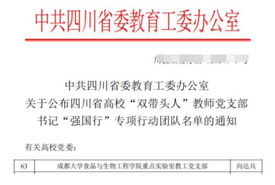 重点实验室教工党支部书记向达兵成功入选。此次入选,是省委教育工委对黄色直播