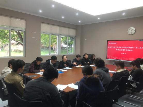 最后,副书记蒋桂高对本次学业预警的工作提出具体要求。班主任要做好学业预警告家长、告学生通知书,做好谈话记录,关注学生重修情况。教务办加强日常课堂出勤管理,建立食生学院学业帮帮团,帮助重修和学业预警的同学顺利完成学业。学工办加强对入学教育等公共课的约束,日常多关心、关怀学生的学业问题。受到预警的同学希望与班主任一起落实学习规划,过程中有任何困难请及时与老师沟通。