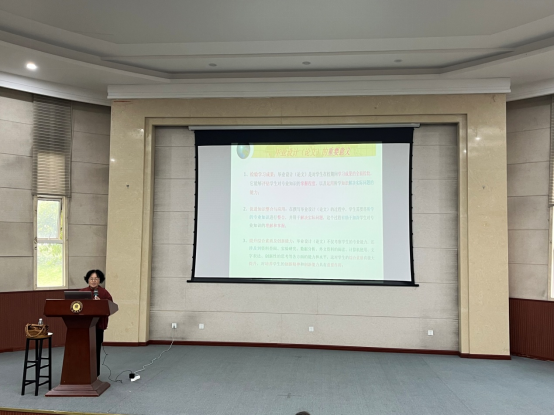 培训会上,谷老师首先对学校近期新修订的一系列教学管理文件进行了系统宣讲,强调了教学文件规范在保障教学质量、推进教学改革中的基础性作用。随后,她结合多年指导经验,重点从毕业论文的重要意义、规范撰写、过程行材料、存在突出的问题、不规范的问题和对毕业论文工作的几点建议等方面给老师们进行了系统而深入的讲解。谷老师通过大量正反实例,生动剖析了论文撰写中的常见问题和注意事项,内容详实,重点突出。