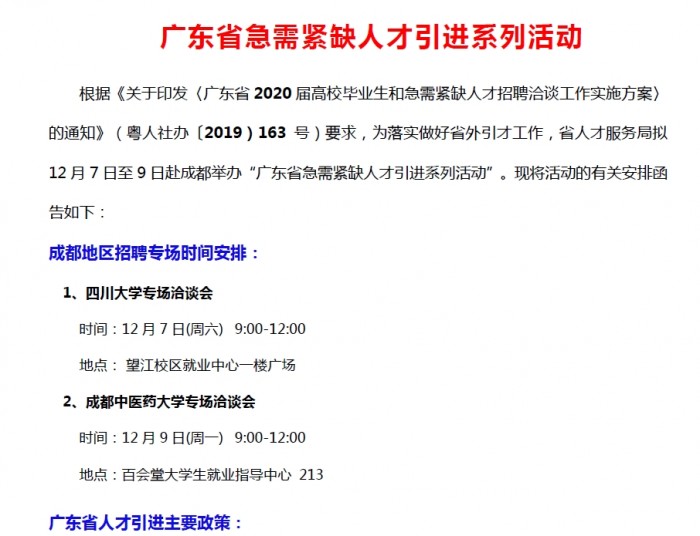 【地方组团招聘会】广东省急需紧缺人才引进系列活动