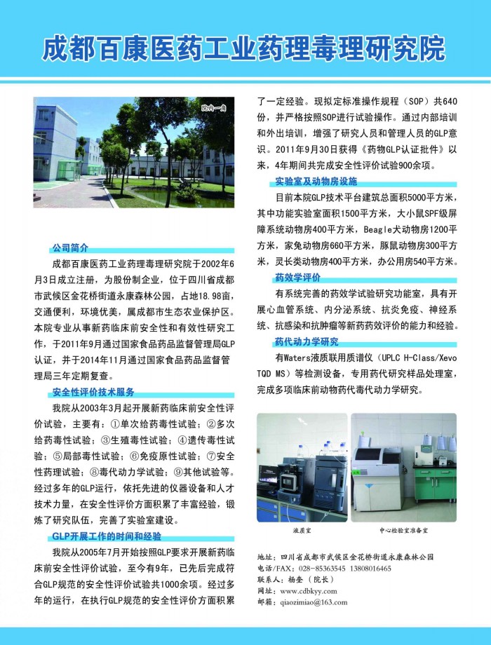 成都百康医药工业药理毒理研究院急需招聘愿意从事分析测试工作的本科生或研究生,专业相关即可,学校不限。 该院是符合国家药物非临床研究质量管理规范的GLP实验室。