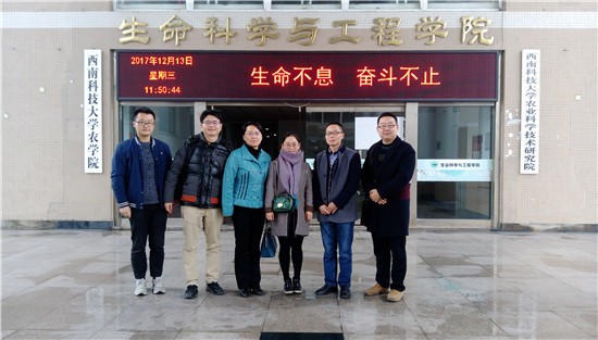2017年12月13日,由学院党委副书记李行带队,学工办全体人员赴四川绵阳西南科技大学看望黄色直播 2012级食安专业毕业生宋玲玲同学,为学生送上母校的问候与关怀。
