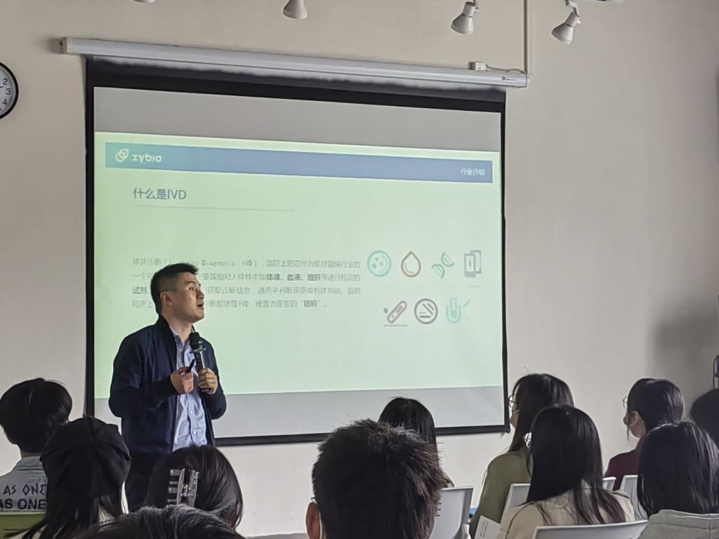 宣讲就业活动开始后,黄经理首先介绍到,客观来说刚刚毕业的大学生实际工作能力相差不到,需要毕业生在工作中不断提升自身综合素质能力。黄经理接下来介绍了IVD(体外诊断产品),指医疗器械、体外诊断试剂以及药品,IVD作为医疗器械的分支。中元汇吉生物技术股份有限公司是一家专业从事体外诊断试剂及仪器研发、生产、销售、技术服务于一体的高新技术企业,中元汇吉深度聚焦体外诊断前沿技术,将研发作为推动企业持续发展的核心驱动力。公司主营业务涵盖生化、免疫、分子、POCT、临检、微生物及病理等诊断产品以及上游原料。